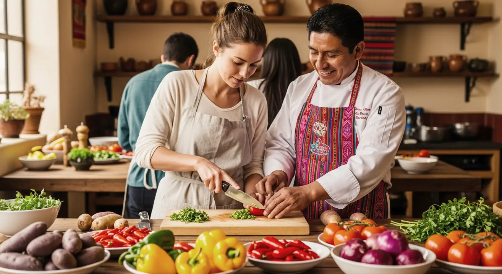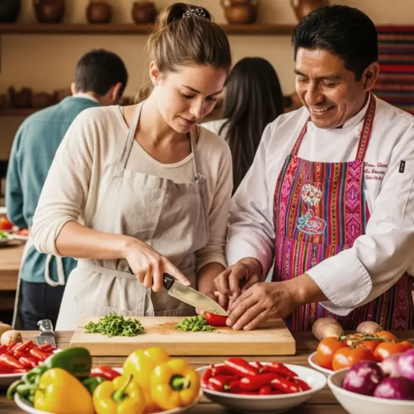 At midday, immerse yourself in the vibrant world of Peruvian cuisine with an interactive cooking class led by a professional local chef. Begin your experience at the iconic San Pedro Market, where the colors, aromas, and variety of fresh Andean ingredients offer a true taste of Peru’s culinary heritage. Your chef will guide you through the selection of key products—fruits, herbs, spices, and artisanal goods—that form the foundation of Peru’s most emblematic dishes.