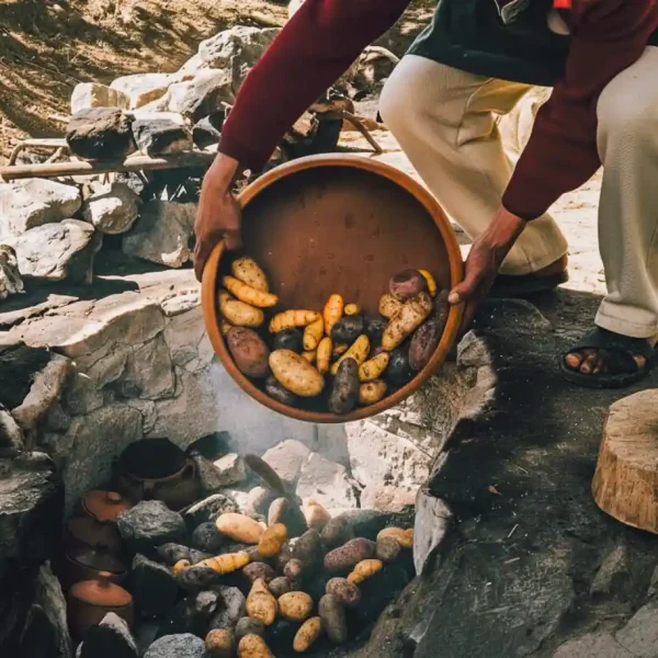 Afterward, enjoy a traditional Pachamanca, an Andean culinary tradition that honors Mother Earth. This ancestral cooking method blends earth, stone, and fire to infuse local ingredients with rich, natural flavors. Before your meal, take a brief stroll through the town of Ollantaytambo to appreciate its charming streets and living Inca heritage.